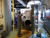 Bakım çalışmaları Viessmann yetkili firma tarafından yapıldı. Kazan içlerinde biriken kurum temizlendi, ekonomik ömrünü tamamlayan parçalar değiştirildi ve tüm aksam kontrol edildi. Bakım sayesinde yakıt tasarrufu sağlanması, sistem verimliliğinin artırılması ve olası arızaların önüne geçilmesi hedefleniyor.