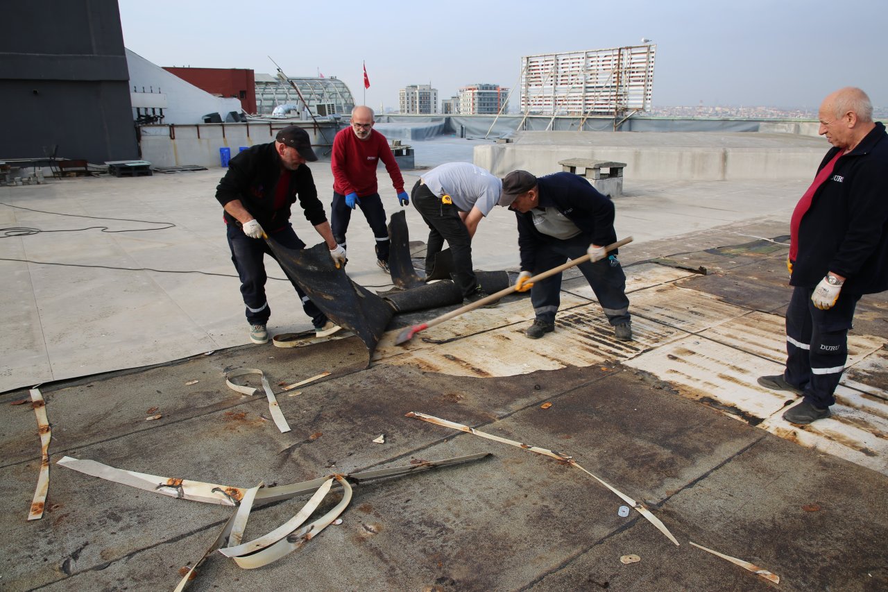PERPA B Blok çatı alanının izolasyon ve drenaj sistemi yenilemesi başladı. 12 firmadan teklif alınıp fiyat ve referans incelemesinin ardından seçilen 4 firmadan kapalı zarf ile teklif alımı yapıldı. En uygun teklifi veren firmayla sözleşme imzalandı. Çatıdaki membran sökülüp izolasyon çalışması için yüzey hazırlanıyor. Daha sonra sırayla astar uygulaması, duayen yüzde yüz saf sprey sistem kaplama ve alifatik poliüretan boya ile son kat kaplama uygulanacak. PERPA Kooperatifi Başkanı Atakan YÜCEL ve yönetim kurulumuz çatıdaki örnek alan uygulamasını teftiş etti. Perpa’yı temiz, düzenli ve modern çehreye kavuşturma çalışmalarımız sürüyor.