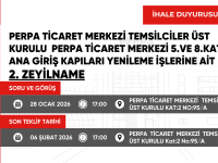 Perpa Ticaret Merkezi 5. ve 8. katlardaki ana giriş kapılarının yenilenmesi için ihaleye çıkılmıştır.