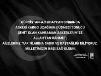 Gürcistan-Azerbaycan sınırında askeri kargo uçağının düşmesi sonucu şehit olan kahraman askerlerimize Allah'tan rahmet; ailelerine, yakınlarına sabır ve başsağlığı diliyoruz.