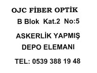 OJC FİBER OPTİK B Blok Kat.2 No:5 ASKERLİK YAPMIŞ DEPO ELEMANI ARANIYOR TEL: 0539 388 19 48