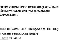 ŞİRKETİMİZ BÜNYESİNDE TİCARİ ARAÇLARLA MALZEME DAĞITIMI YAPACAK SEVKİYAT ELEMANLARI ARANMAKTADIR.