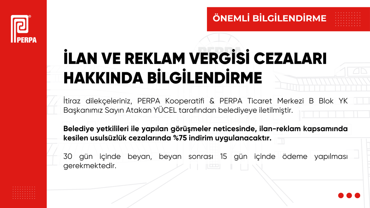 Sizlerden gelen itiraz dilekçeleri toplanarak belediyeye teslim edilmiş, söz konusu itirazlar PERPA Kooperatifi & PERPA Ticaret Merkezi B Blok Yönetim Kurulu Başkanımız Sayın Atakan YÜCEL tarafından belediye nezdinde iletilmiştir.