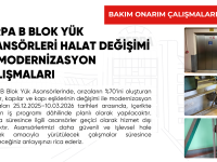 Çalışmalar, 25.12.2025 – 10.03.2026 tarihleri arasında, ilan edilen iş programı dâhilinde ve planlı şekilde yürütülecek olup, ilgili asansörler çalışma süreleri boyunca geçici olarak hizmet dışı kalacaktır.