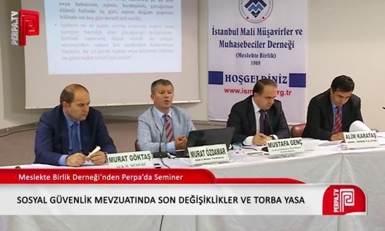 İstanbul Mali Müşavirler ve Muhasebeciler Derneği Perpa B Blok Konferans Salonunda seminer verdi. SGK İl Müdürü Murat Göktaş, SGK İl Müdür Yardımcısı Murat Özdamar ve İSMMMD Y.K. Üyesi Alim Karataş’ın katıldığı seminerin oturum başkanlığını SMMM Mustafa Genç yaptı. Seminer'de Sosyal Güvenlik Mevzuatı’nda son değişiklikler ve Torba Yasa ele alındı.