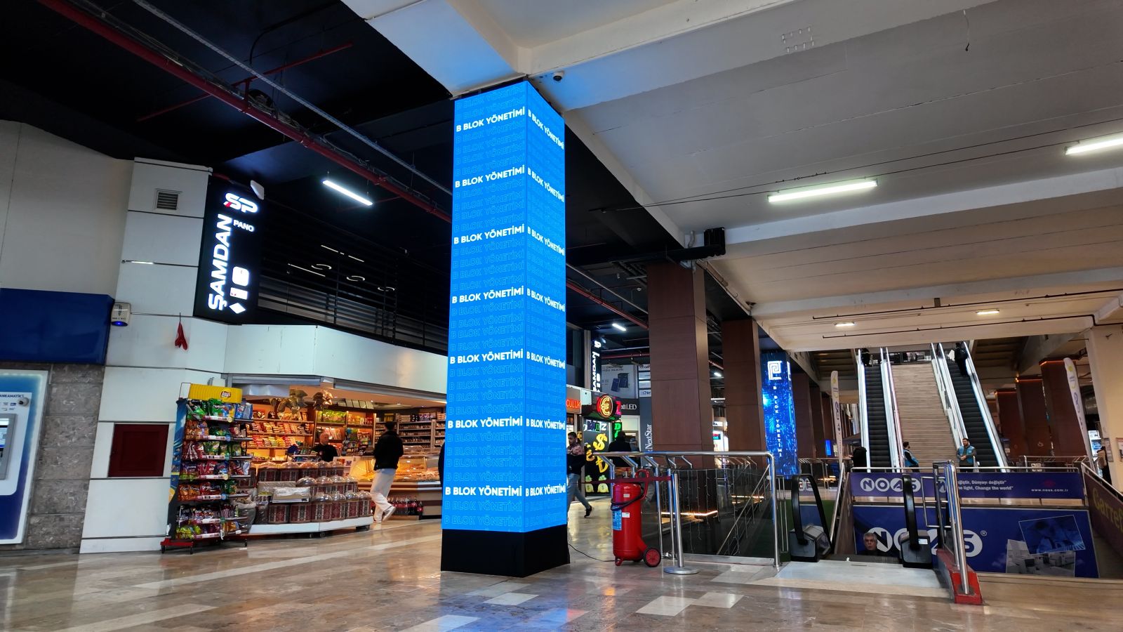 PERPA B Blok Yönetimi tarafından 8. katta yürütülen kolon yenileme ve modernizasyon çalışmaları tamamlandı. Çalışmalar kapsamında iki adet kolon tamamen LED ekran ile kaplanırken, diğer kolonlarda ahşap kaplama işlemleri tamamlandı.