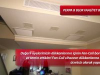 Değerli üyelerimizin dükkanlarının içinin Fan-Coil borulaması ve temin ettikleri Fan-Coil cihazının dükkanlarına montajı ücretsiz olarak yapılacaktır.
