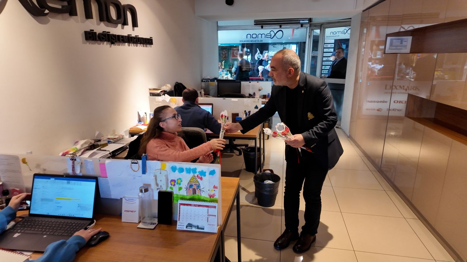 Etkinlik ilk olarak PERPA B Blok yönetim ofisinde görev yapan kadın çalışanlara çiçek takdimiyle başladı. Ardından katlar gezilerek ticaret merkezinde çalışan kadın emekçilere çiçek dağıtıldı.