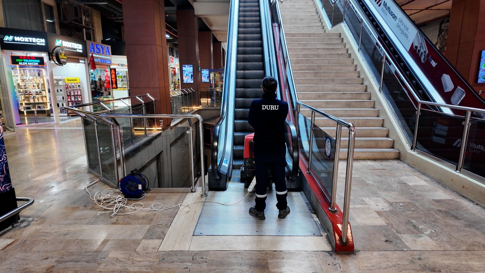 Yapılan temizlik çalışması kapsamında PERPA B Blok’ta bulunan tüm yürüyen merdivenler sırayla temizlendi. Çalışmanın tamamlanmasıyla birlikte merdivenler daha temiz ve güvenli bir şekilde hizmet vermeye başladı.
