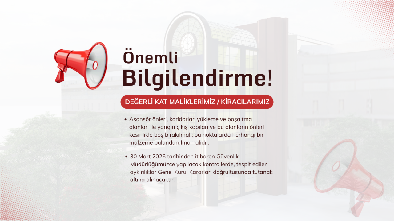 30 Mart 2026 tarihinden itibaren Güvenlik Müdürlüğümüzce yapılacak kontrollerde, tespit edilen aykırılıklar Genel Kurul Kararları doğrultusunda tutanak altına alınacaktır.